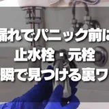 タンクやウォシュレット周辺も要チェックです。給水ホースの接続部や止水栓の根元を触って濡れていないか確認してください。配管に沿って上から下へ水滴が伝っていれば、接続不良が原因です。